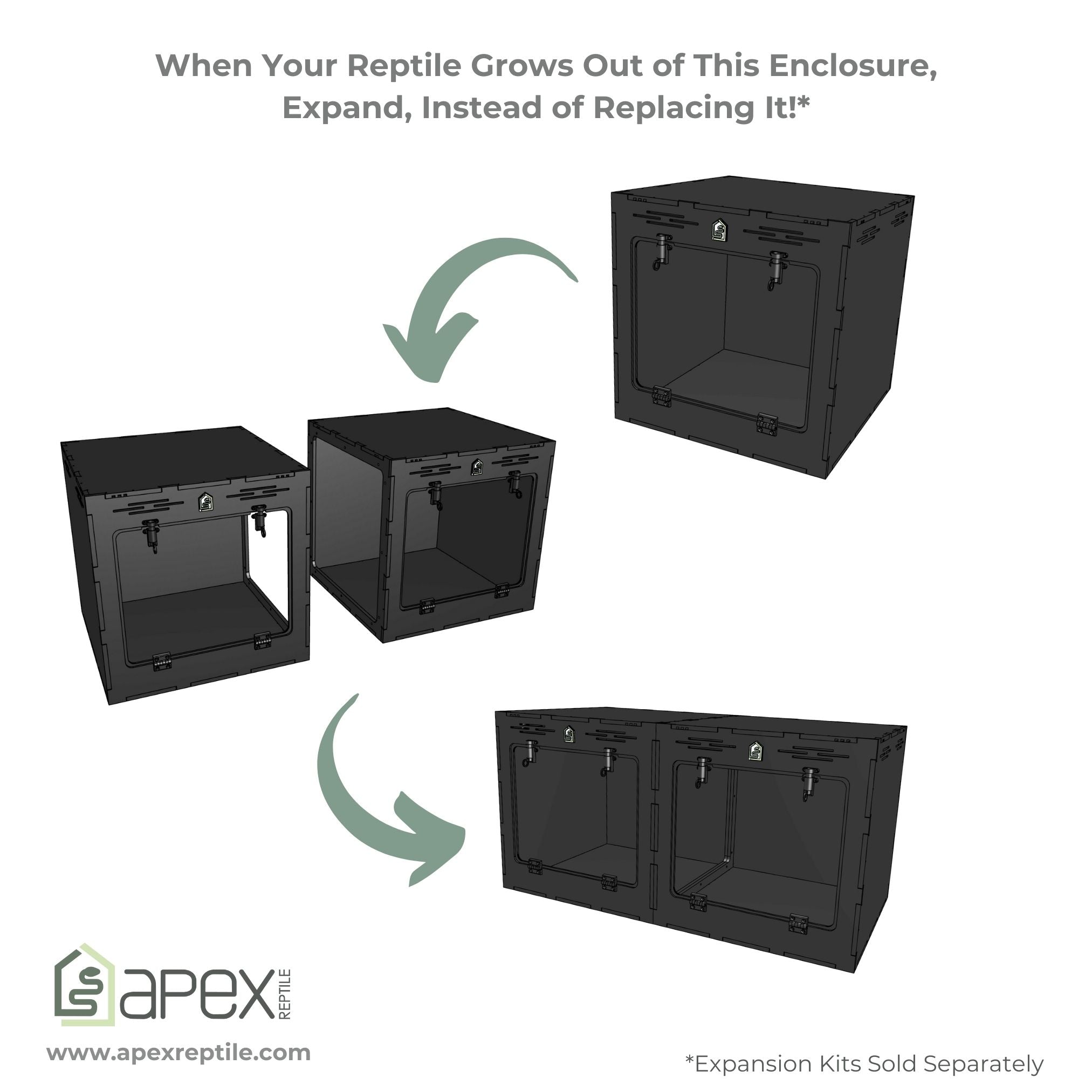 - Apex Reptile modular enclosure system means no need to replace your enclosure when your reptile grows out of it.